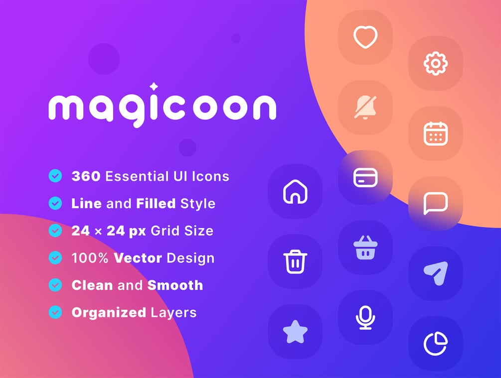 magicoon is a modern icons library that every designer should have, ready for instant use anytime and anywhere on your projects.