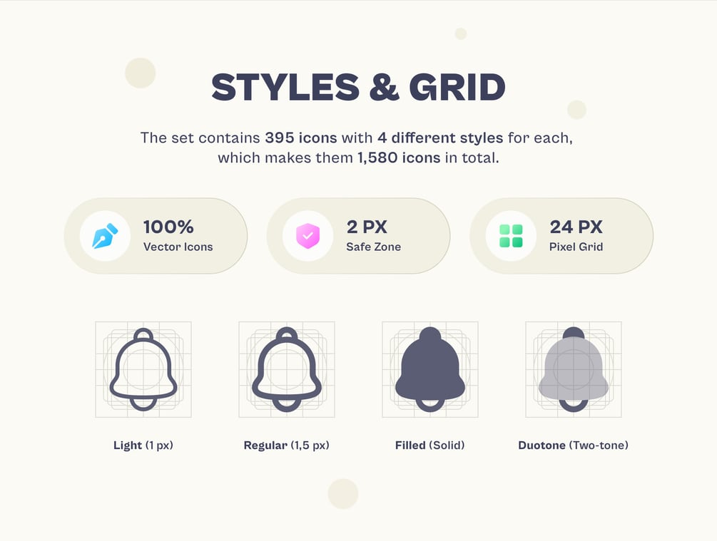 - 4 Styles (Light, Regular, Filled, Duotone).