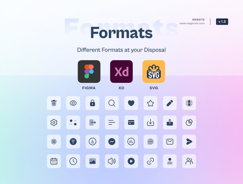 - Support (Figma, Adobe XD, SVG).